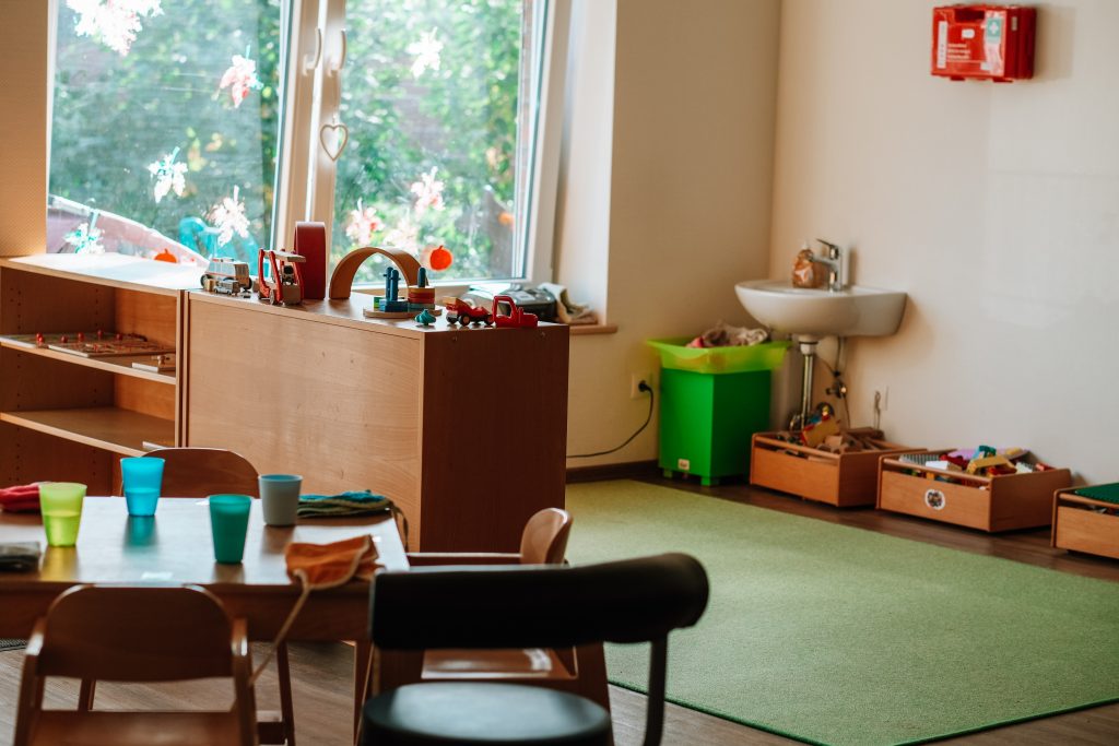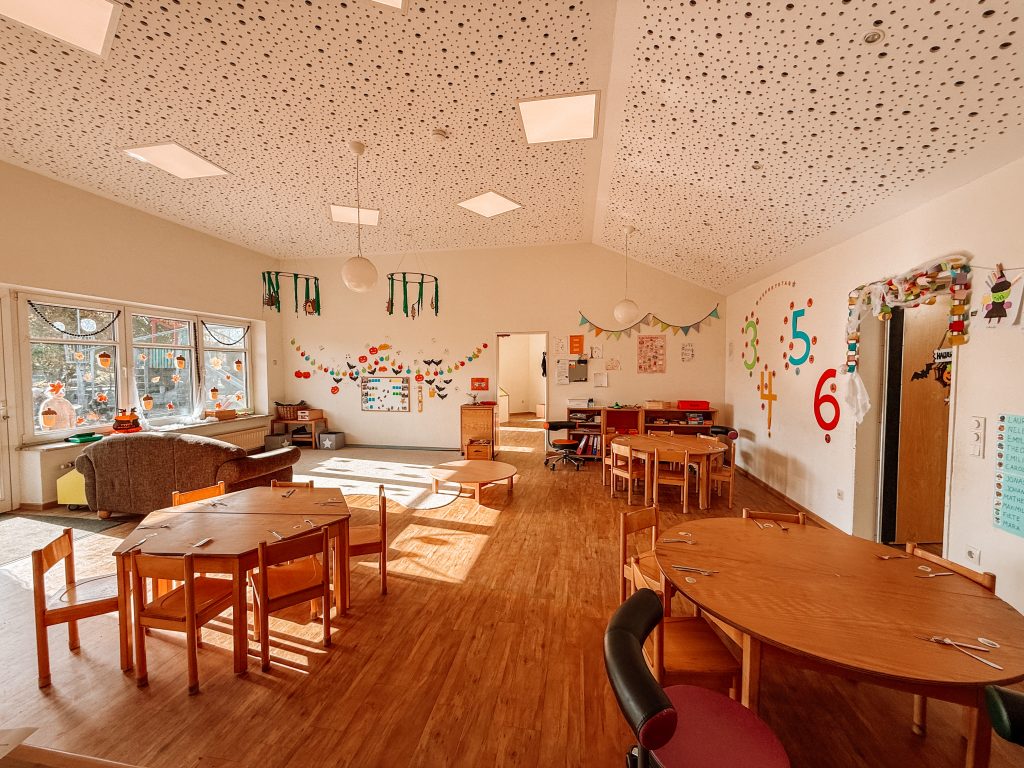 In der Rappelkiste gibt es zusätzlich gruppeneigene Wasch- und Toillettenbereiche, sowie zwei große Schlafräume.